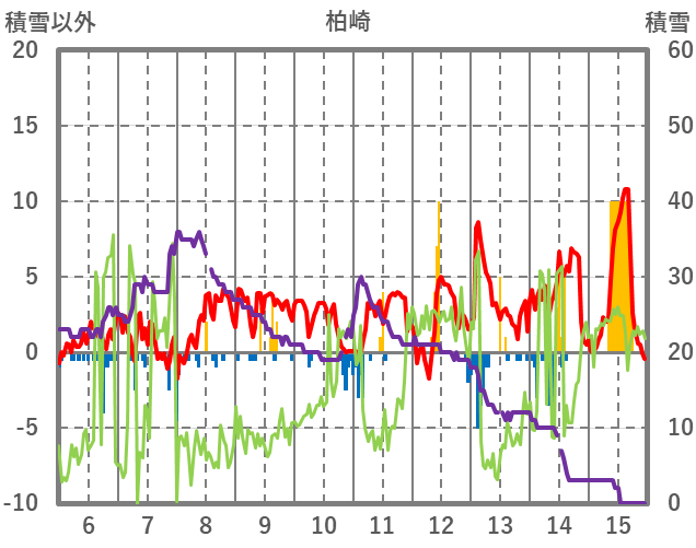| 日 | 時 | 気温 | 降水 | 風向/風速 | 日照 | 積雪 | 降雪 |