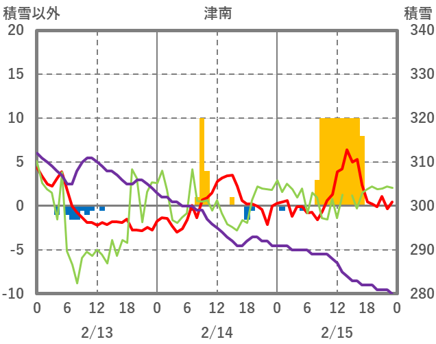 | 日 | 時 | 気温 | 降水 | 風向/風速 | 日照 | 積雪 | 降雪 |