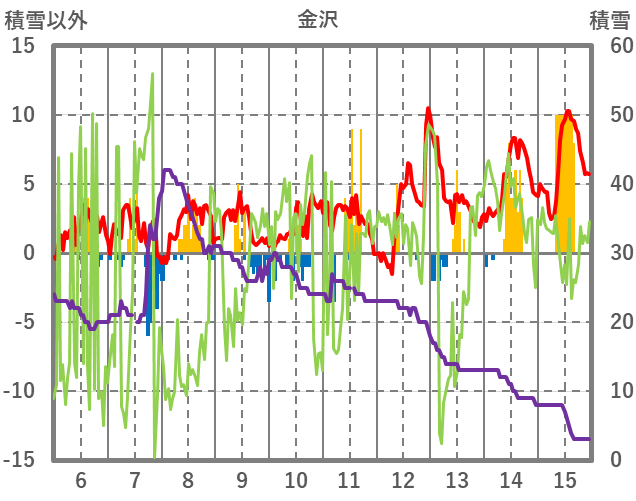 | 日 | 時 | 気温 | 降水 | 風向/風速 | 日照 | 積雪 | 降雪 |