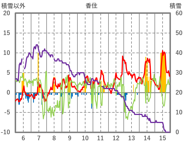| 日 | 時 | 気温 | 降水 | 風向/風速 | 日照 | 積雪 | 降雪 |