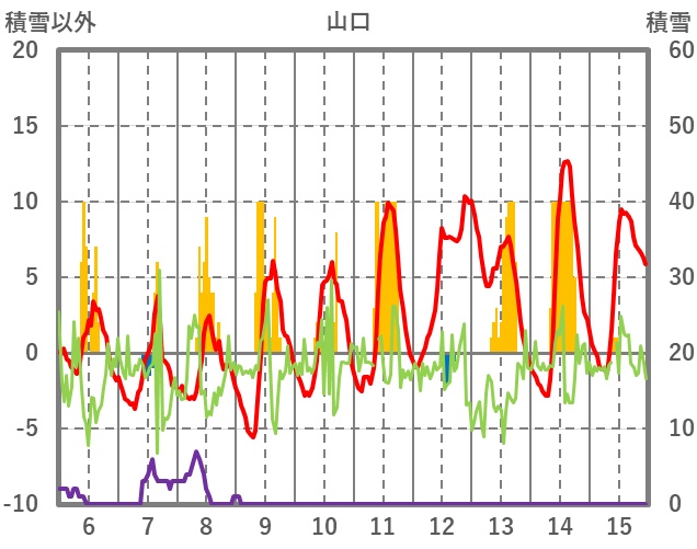 | 日 | 時 | 気温 | 降水 | 風向/風速 | 日照 | 積雪 | 降雪 |