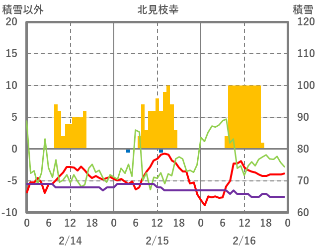 | 日 | 時 | 気温 | 降水 | 風向/風速 | 日照 | 積雪 | 降雪 |