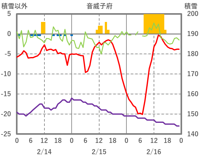 | 日 | 時 | 気温 | 降水 | 風向/風速 | 日照 | 積雪 | 降雪 |