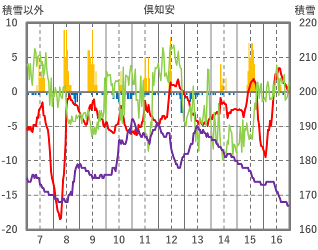 | 日 | 時 | 気温 | 降水 | 風向/風速 | 日照 | 積雪 | 降雪 |