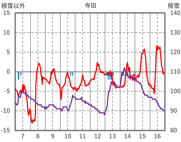 | 日 | 時 | 気温 | 降水 | 風向/風速 | 日照 | 積雪 | 降雪 |
