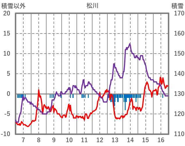 | 日 | 時 | 気温 | 降水 | 風向/風速 | 日照 | 積雪 | 降雪 |