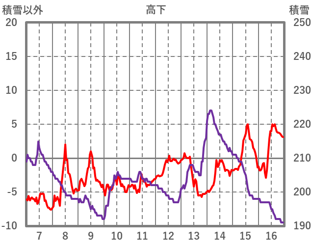 | 日 | 時 | 気温 | 降水 | 風向/風速 | 日照 | 積雪 | 降雪 |