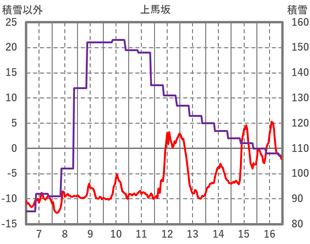 | 日 | 時 | 気温 | 降水 | 風向/風速 | 日照 | 積雪 | 降雪 |