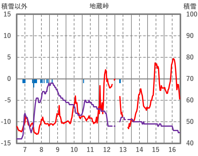 | 日 | 時 | 気温 | 降水 | 風向/風速 | 日照 | 積雪 | 降雪 |