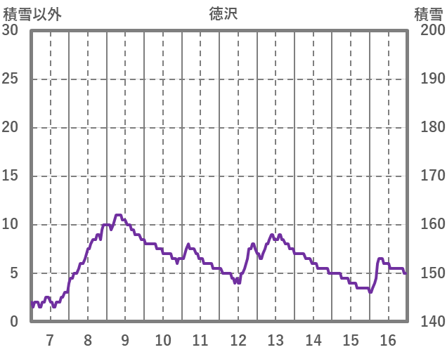 | 日 | 時 | 気温 | 降水 | 風向/風速 | 日照 | 積雪 | 降雪 |