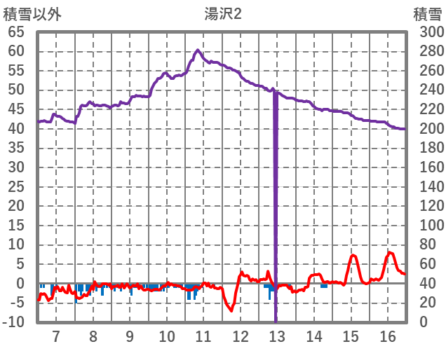 | 日 | 時 | 気温 | 降水 | 風向/風速 | 日照 | 積雪 | 降雪 |