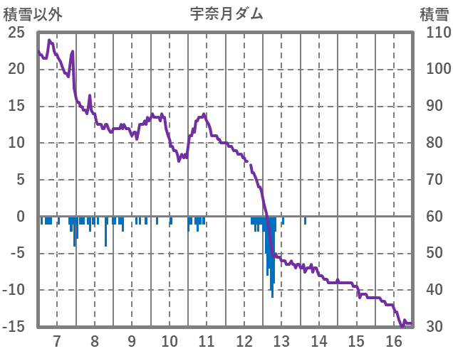 | 日 | 時 | 気温 | 降水 | 風向/風速 | 日照 | 積雪 | 降雪 |