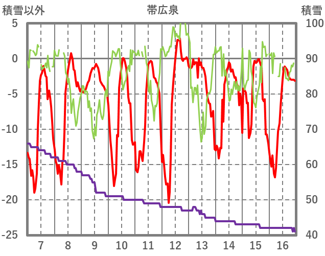| 日 | 時 | 気温 | 降水 | 風向/風速 | 日照 | 積雪 | 降雪 |