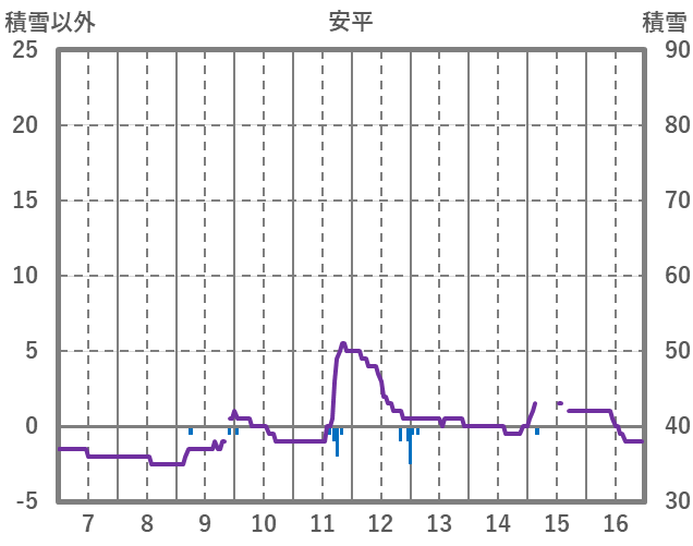 | 日 | 時 | 気温 | 降水 | 風向/風速 | 日照 | 積雪 | 降雪 |
