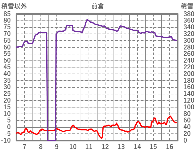 | 日 | 時 | 気温 | 降水 | 風向/風速 | 日照 | 積雪 | 降雪 |