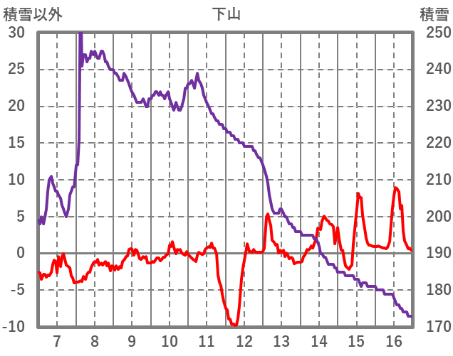 | 日 | 時 | 気温 | 降水 | 風向/風速 | 日照 | 積雪 | 降雪 |