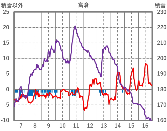 | 日 | 時 | 気温 | 降水 | 風向/風速 | 日照 | 積雪 | 降雪 |