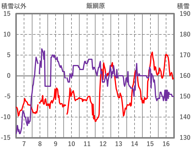 | 日 | 時 | 気温 | 降水 | 風向/風速 | 日照 | 積雪 | 降雪 |