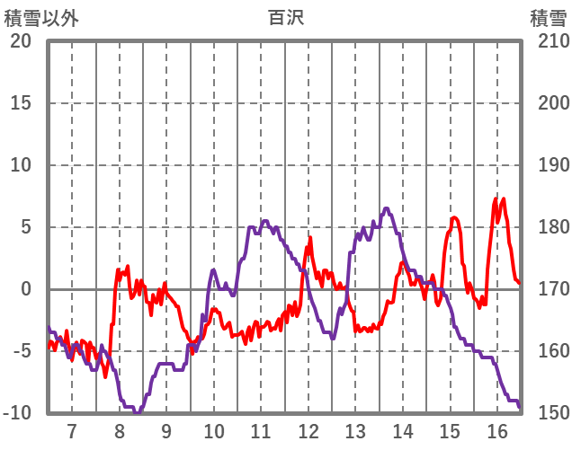 | 日 | 時 | 気温 | 降水 | 風向/風速 | 日照 | 積雪 | 降雪 |