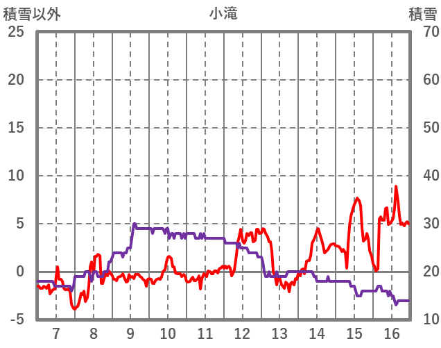 | 日 | 時 | 気温 | 降水 | 風向/風速 | 日照 | 積雪 | 降雪 |