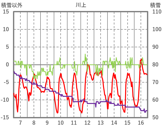 | 日 | 時 | 気温 | 降水 | 風向/風速 | 日照 | 積雪 | 降雪 |