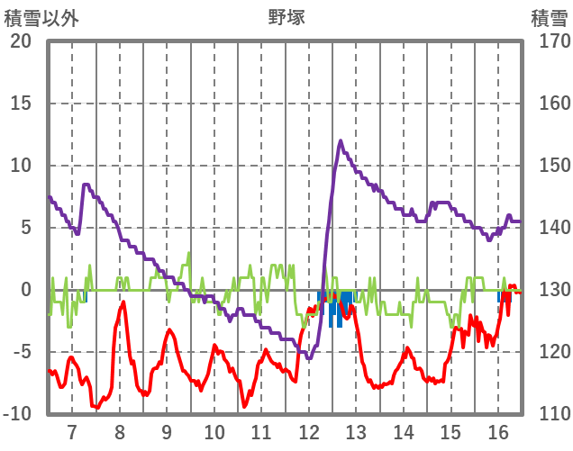 | 日 | 時 | 気温 | 降水 | 風向/風速 | 日照 | 積雪 | 降雪 |