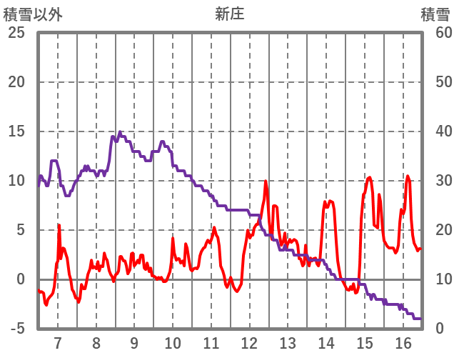 | 日 | 時 | 気温 | 降水 | 風向/風速 | 日照 | 積雪 | 降雪 |