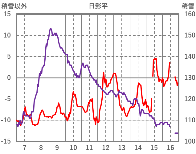 | 日 | 時 | 気温 | 降水 | 風向/風速 | 日照 | 積雪 | 降雪 |