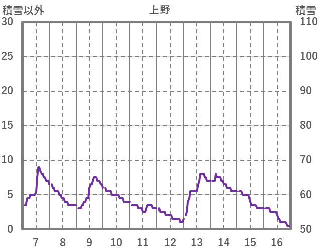 | 日 | 時 | 気温 | 降水 | 風向/風速 | 日照 | 積雪 | 降雪 |