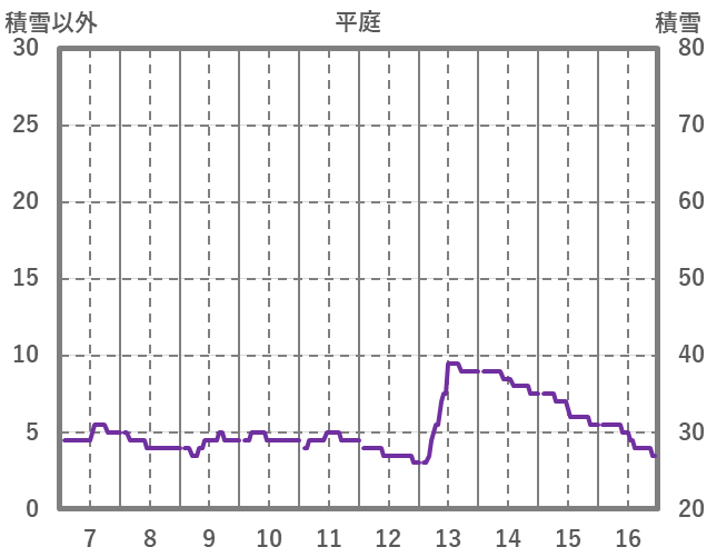 | 日 | 時 | 気温 | 降水 | 風向/風速 | 日照 | 積雪 | 降雪 |