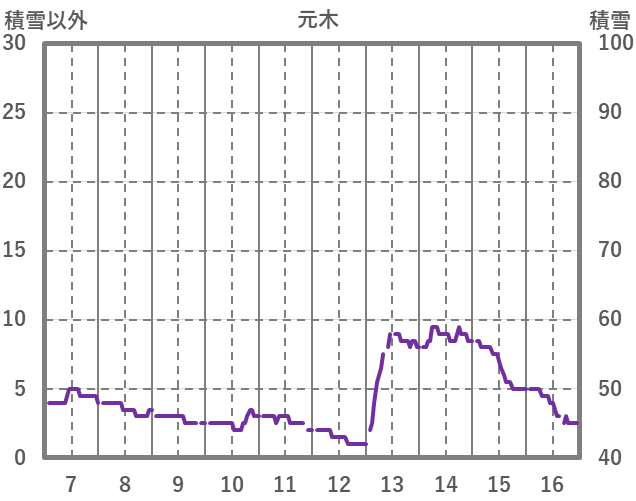 | 日 | 時 | 気温 | 降水 | 風向/風速 | 日照 | 積雪 | 降雪 |