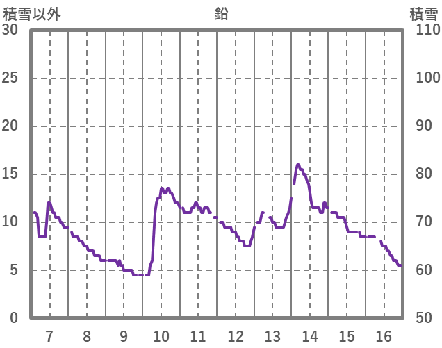| 日 | 時 | 気温 | 降水 | 風向/風速 | 日照 | 積雪 | 降雪 |