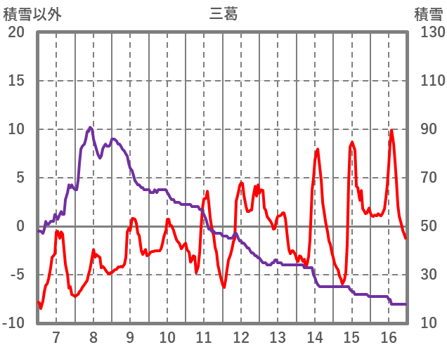 | 日 | 時 | 気温 | 降水 | 風向/風速 | 日照 | 積雪 | 降雪 |