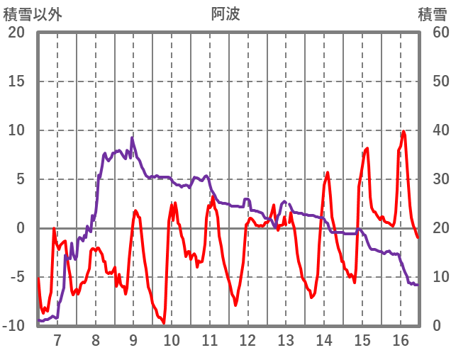 | 日 | 時 | 気温 | 降水 | 風向/風速 | 日照 | 積雪 | 降雪 |