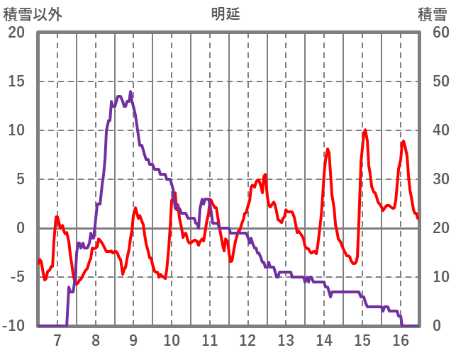 | 日 | 時 | 気温 | 降水 | 風向/風速 | 日照 | 積雪 | 降雪 |