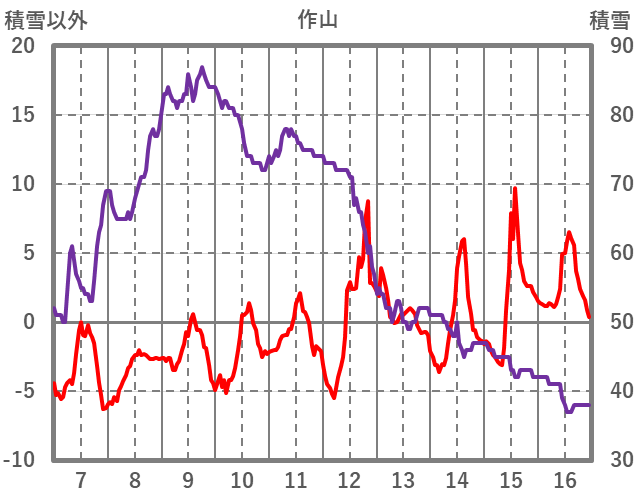 | 日 | 時 | 気温 | 降水 | 風向/風速 | 日照 | 積雪 | 降雪 |