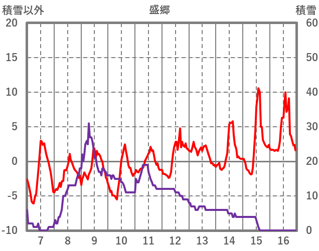 | 日 | 時 | 気温 | 降水 | 風向/風速 | 日照 | 積雪 | 降雪 |