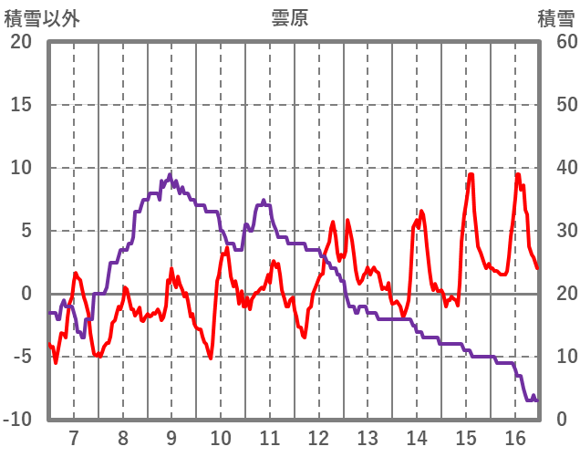 | 日 | 時 | 気温 | 降水 | 風向/風速 | 日照 | 積雪 | 降雪 |
