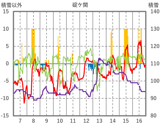 | 日 | 時 | 気温 | 降水 | 風向/風速 | 日照 | 積雪 | 降雪 |