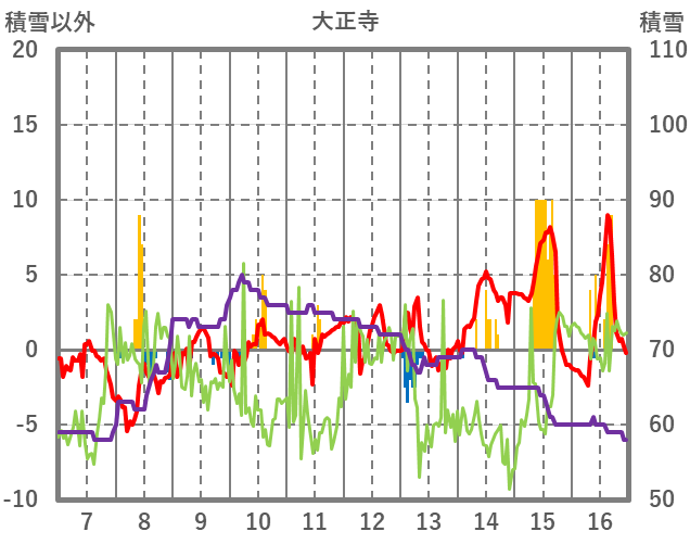 | 日 | 時 | 気温 | 降水 | 風向/風速 | 日照 | 積雪 | 降雪 |