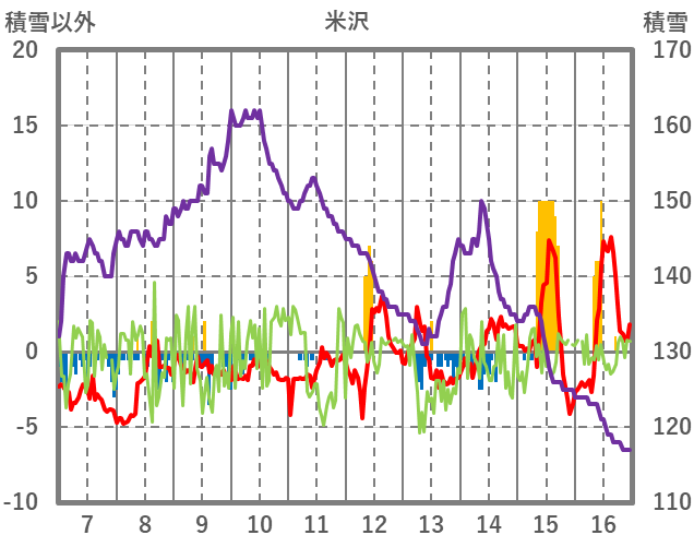 | 日 | 時 | 気温 | 降水 | 風向/風速 | 日照 | 積雪 | 降雪 |
