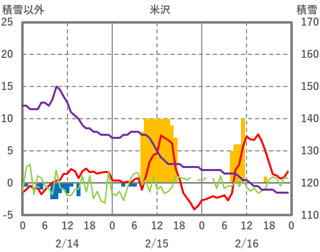 | 日 | 時 | 気温 | 降水 | 風向/風速 | 日照 | 積雪 | 降雪 |