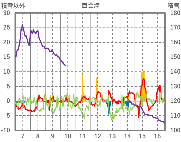 | 日 | 時 | 気温 | 降水 | 風向/風速 | 日照 | 積雪 | 降雪 |