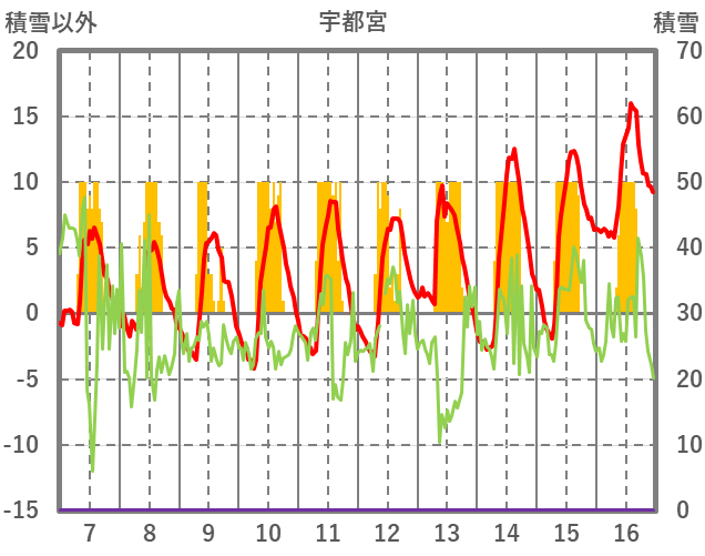 | 日 | 時 | 気温 | 降水 | 風向/風速 | 日照 | 積雪 | 降雪 |