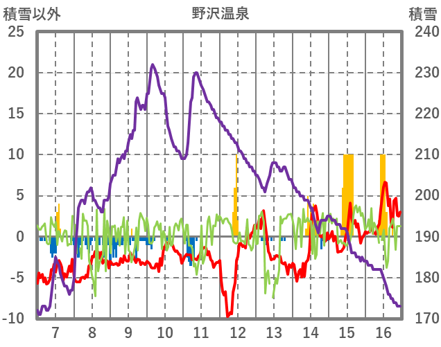 | 日 | 時 | 気温 | 降水 | 風向/風速 | 日照 | 積雪 | 降雪 |