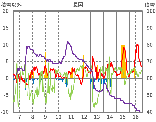 | 日 | 時 | 気温 | 降水 | 風向/風速 | 日照 | 積雪 | 降雪 |