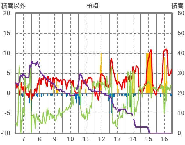 | 日 | 時 | 気温 | 降水 | 風向/風速 | 日照 | 積雪 | 降雪 |