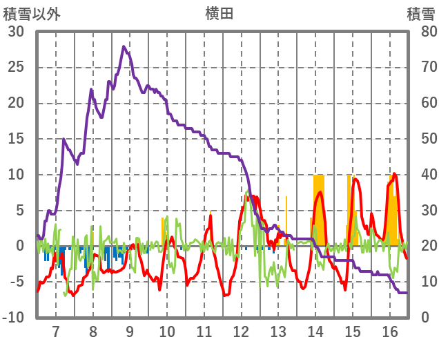 | 日 | 時 | 気温 | 降水 | 風向/風速 | 日照 | 積雪 | 降雪 |