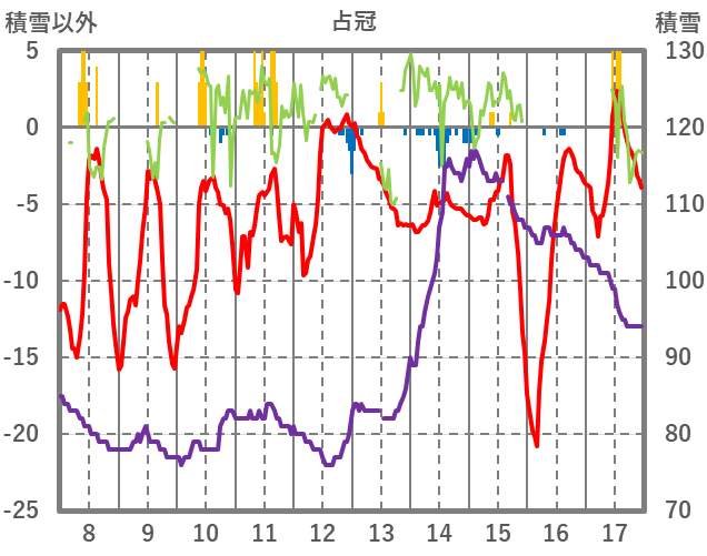 | 日 | 時 | 気温 | 降水 | 風向/風速 | 日照 | 積雪 | 降雪 |