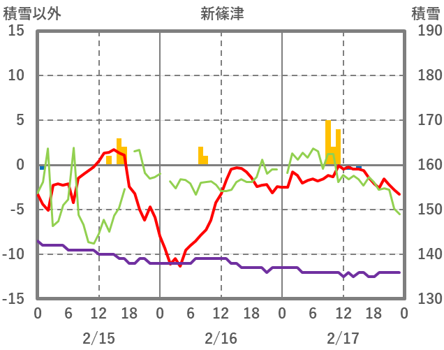 | 日 | 時 | 気温 | 降水 | 風向/風速 | 日照 | 積雪 | 降雪 |
